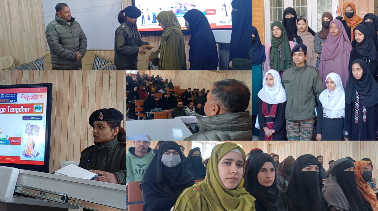 Karnah Kupwara March 8: Marking International Women’s Day with a strong message of empowerment, Degree College Tangdhar hosted a special awareness event focused on career opportunities for women in the Armed Forces. The event, organized in collaboration with the Indian Army’s Shakti Vijay Brigade, aimed to inspire young women to break barriers and explore fulfilling careers in defense.