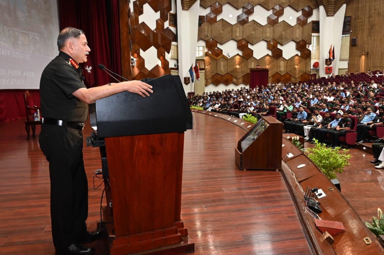 Gen Dwivedi urged officers to think beyond traditional battlefields and prepare for hybrid and multi-domain warfare, where challenges could arise from land, sea, air, space, and cyberspace simultaneously. He stressed the importance of real-time intelligence, rapid decision-making, and strategic coordination, stating that future wars will be won not just by individual service excellence, but through collective synergy and unified operational effectiveness.