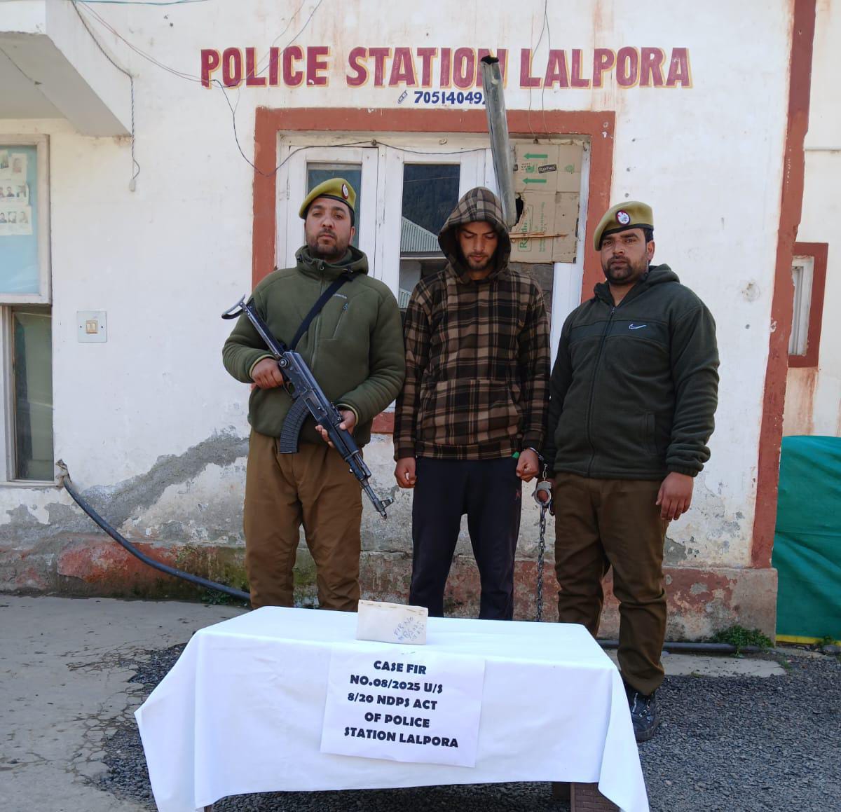 Upon conducting a personal search, the police recovered 10 grams of Charas-like contraband substance from his possession. Subsequently, a case under FIR No. 08/2025 U/S 8/20 NDPS Act has been registered at Police Station Lalpora, and further investigation is underway.