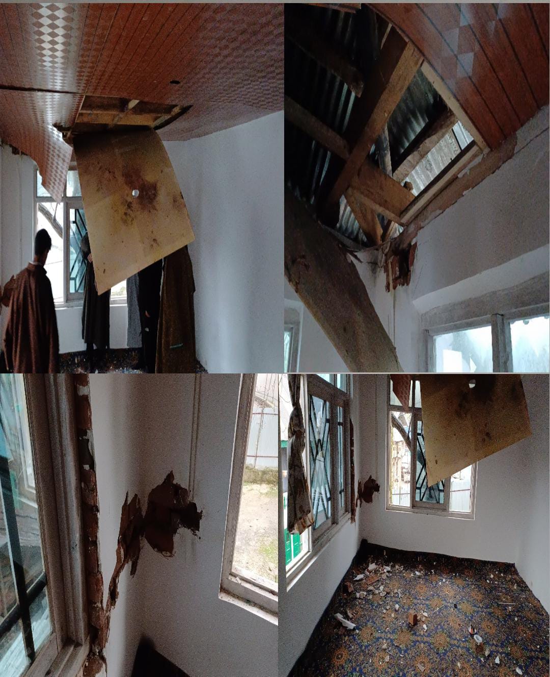 Lolab, March 27: A residential house of Mushtaq Ahmad Bhat in Krusan Lolab was partially damaged after it was hit by a lightning bolt. The force caused the partial collapse of the ceiling, resulting in cracks in the walls and damaging the wooden frame of the roof.